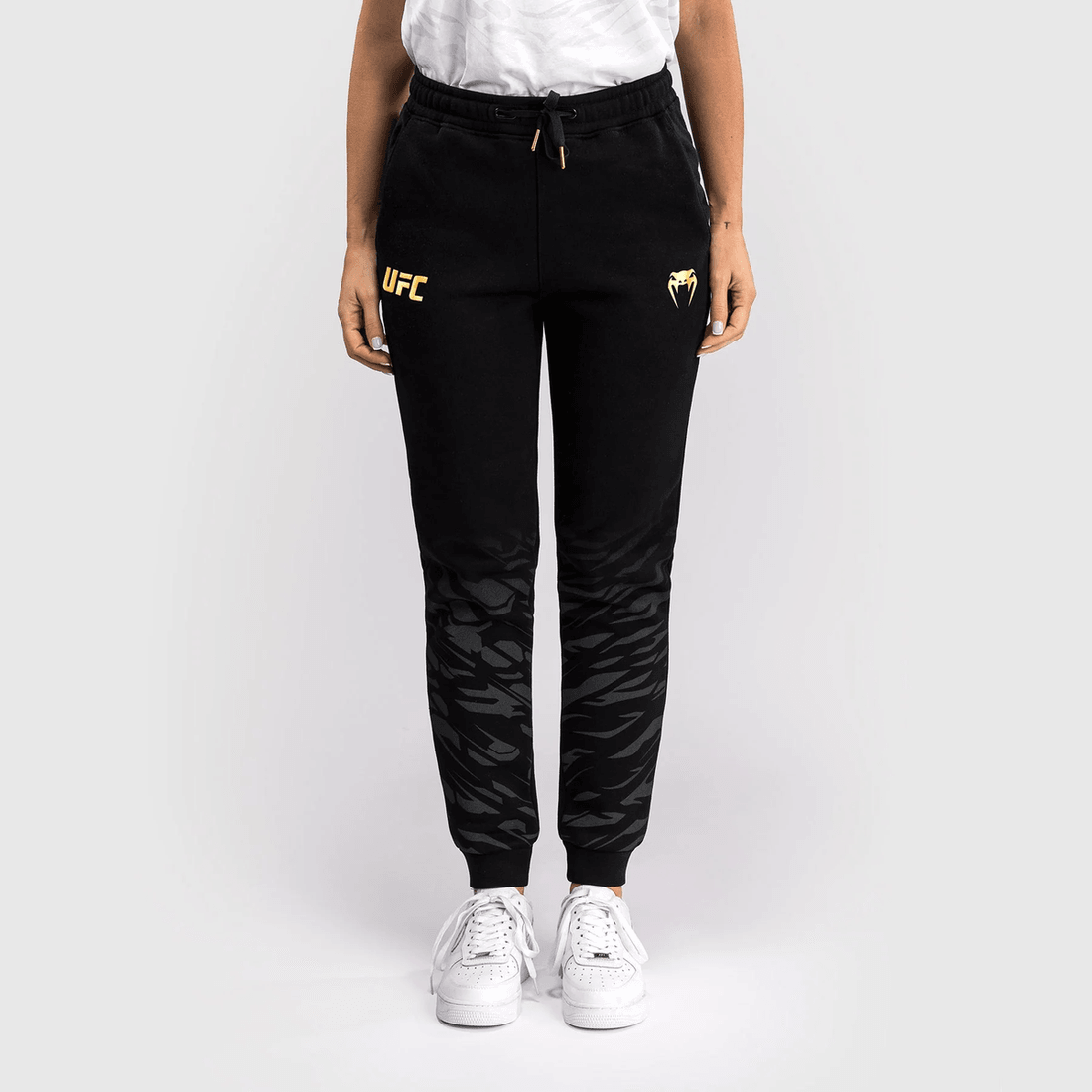 Step into the arena of style and performance with the UFC Fusion by Venum Women’s Replica Pant - Champion. Designed for passionate fans and dedicated fighters, these pants embody the spirit of UFC champions with a striking black and gold colorway.