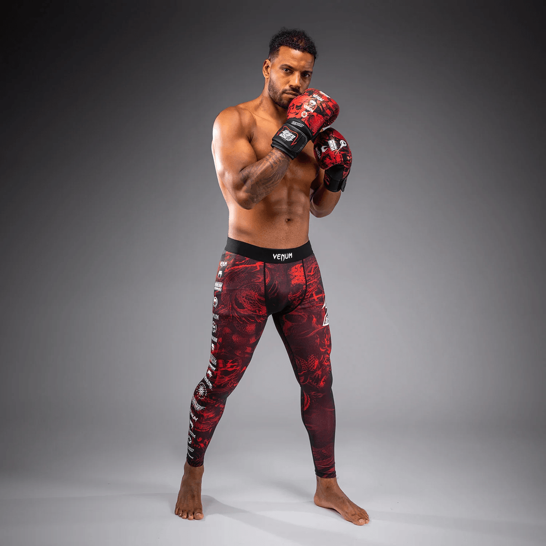 The Venum 20th Anniversary Spats - Black/Red feature eye-catching graphics inspired by our bestselling collections, making them as stylish as they are functional. The premium fabric construction ensures durability and comfort, allowing you to focus on your training without distractions.