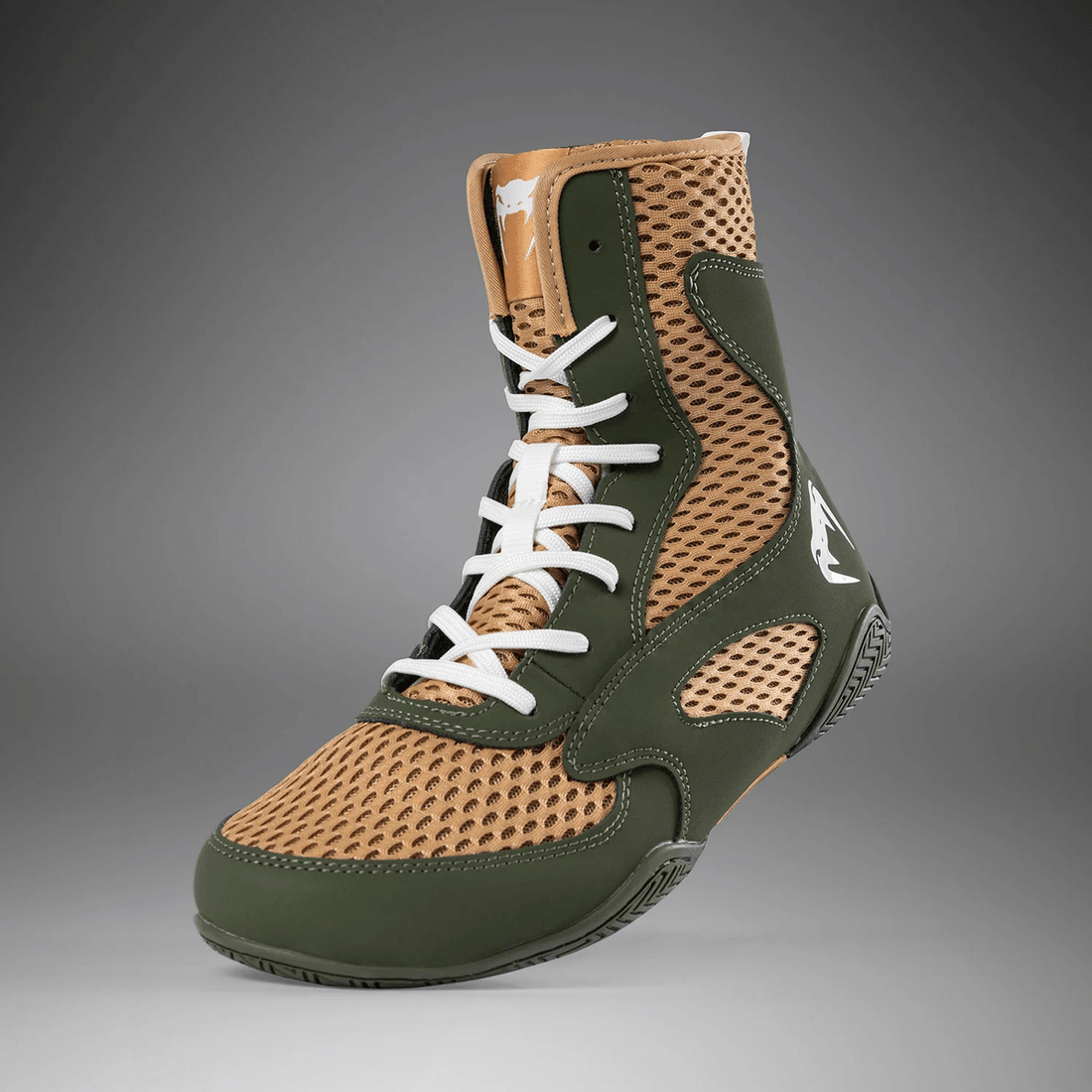 Step into the ring with confidence wearing the Venum Contender Boxing Shoes in Military Green/Sand. Engineered for fighters at all levels, these lightweight shoes offer unmatched stability and support, making them perfect for your boxing training sessions.