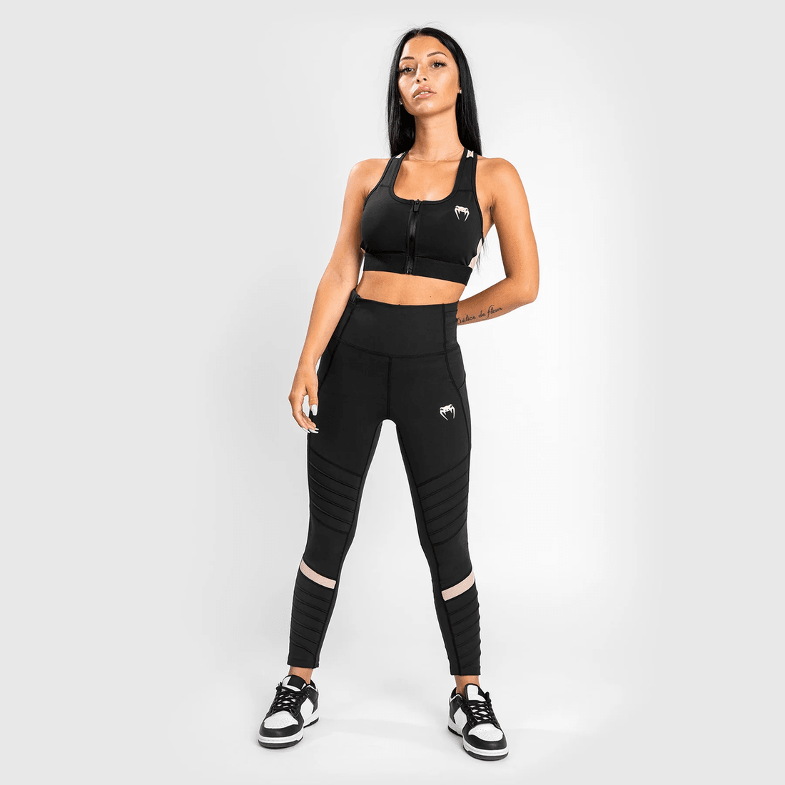 Elevate your workout wardrobe with the Venum Moto Leggings 7/8. Designed for women who seek both style and performance, these leggings in striking black and sand provide the perfect blend of comfort and support. Whether you're hitting the gym or running errands, these leggings are your ultimate companion.