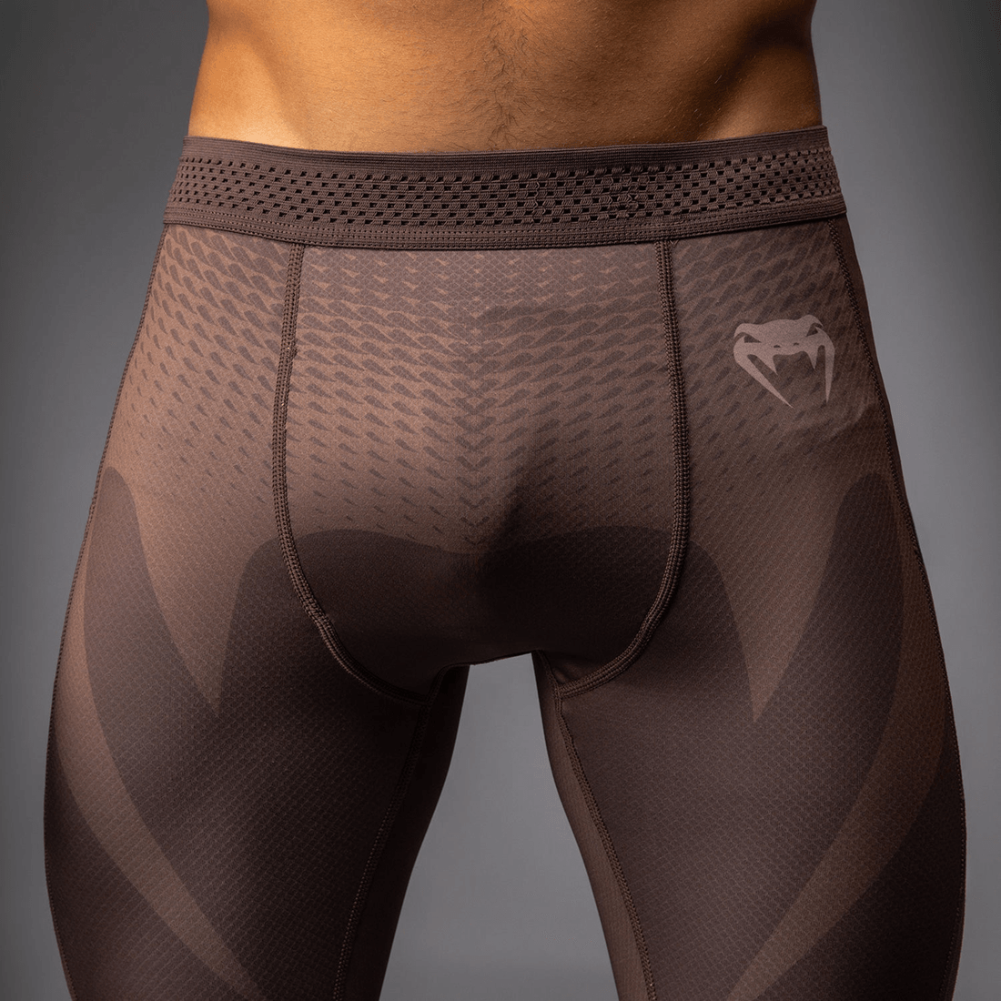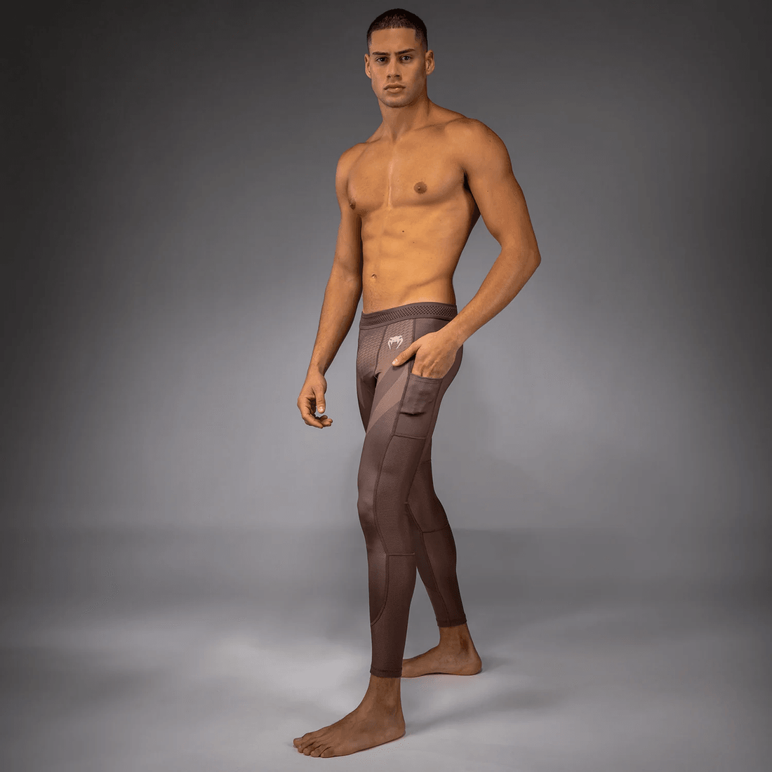 The Venum No Gi Spats - Chocolate Brown are your ultimate companion for jiu-jitsu and MMA training. Officially ranked and approved by the IBJJF, these men’s compression spats are engineered to elevate your game, providing unmatched comfort and support during intense sessions.