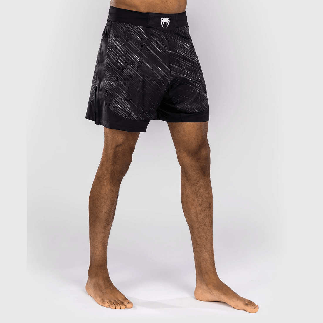 The Venum Rapid Fight Shorts - Black/Storm Grey are meticulously designed for fighters at all levels. Their long fit ensures that you stay covered during both standing and ground work, while the lightweight material allows for quick movements without restriction. The elastic waistband secures the fit, making these shorts ideal for grappling, striking, or any combat training.