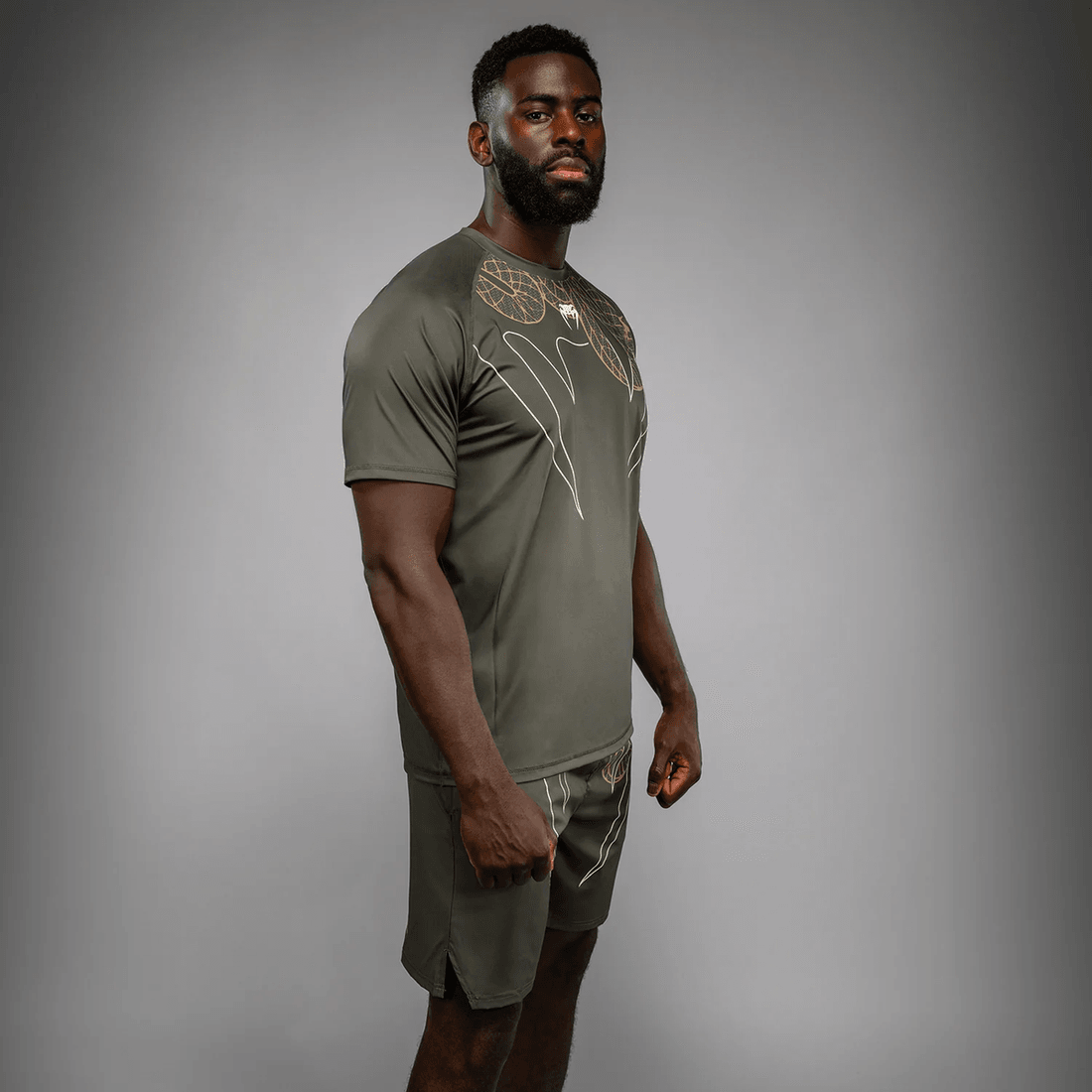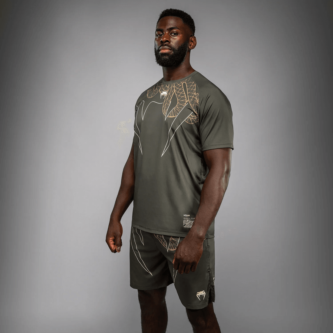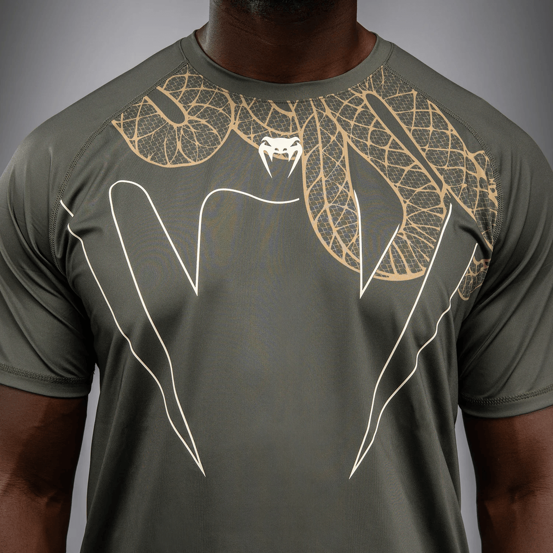 Experience unparalleled performance with the Venum Serpenti Dry Tech T-Shirt in Khaki/Bronze/Ivory. Designed for athletes who demand excellence, this shirt embodies the silent yet fierce essence of a snake, empowering you to conquer your training sessions.