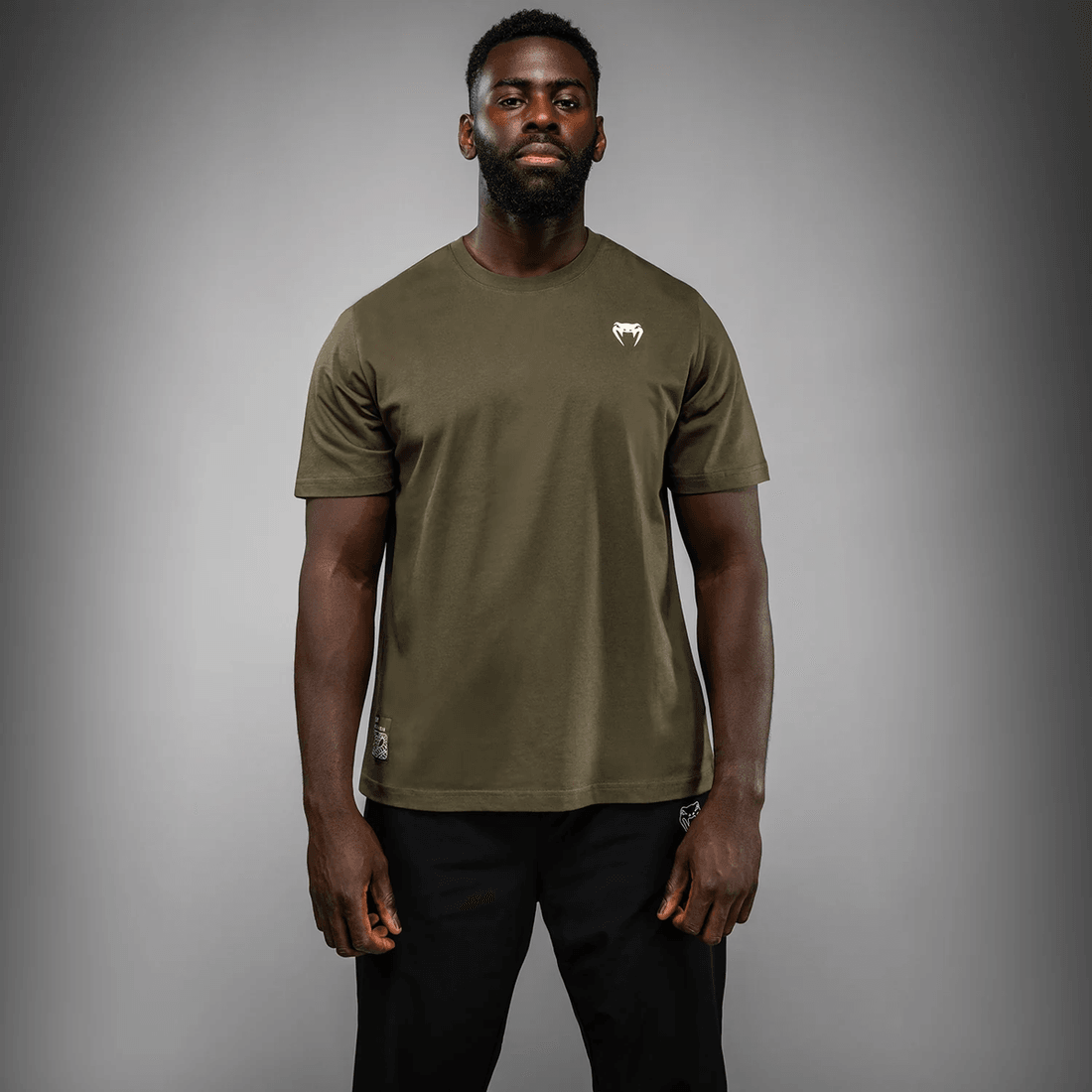 The Venum Serpenti T-Shirt is more than just a piece of apparel; it's a statement of strength. Its short sleeves and breathable fabric make it perfect for workouts or casual outings alike. The khaki, bronze, and ivory color scheme adds a touch of sophistication while the snake motif captures the essence of agility and stealth. Wear it at the gym, on the streets, or while relaxing at home—this shirt is designed to accompany you everywhere.