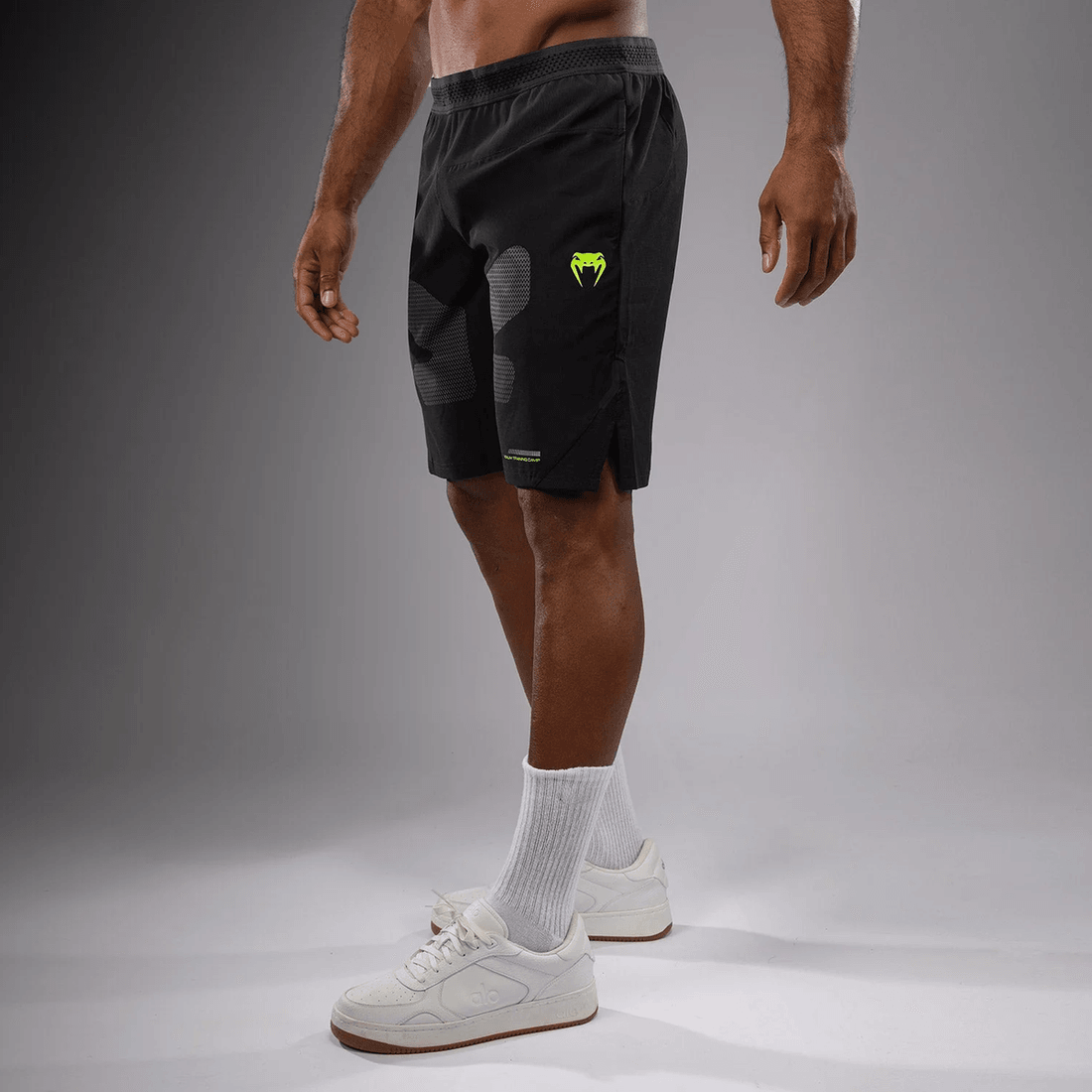 The Venum Training Camp 4.0 Training Short features a sleek black base highlighted by vibrant neon green accents, embodying the energy of Venum Training Camp in Thailand. These shorts are not just about looks; they are engineered for performance. The long-length cut offers optimal coverage, while the elastic waistband keeps you comfortable during the most intense sessions.