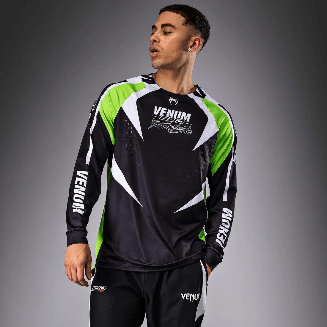 The Venum x Bud Racing Men’s Dry-Tech T-Shirt combines comfort and style seamlessly. Whether you're cheering on your favorite riders or pushing your limits at the gym, this t-shirt keeps you cool and dry. The lightweight design ensures that you stay comfortable, while the eye-catching graphics reminiscent of fangs make a bold statement.
