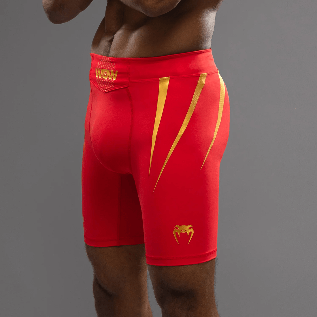 Unleash your fighting spirit with the Venum x WOW FC Men’s Vale Tudo Shorts in striking Fury Red and Gold. Designed for champions, these shorts are the perfect blend of style and performance, catering to the rigorous demands of MMA training and competition.